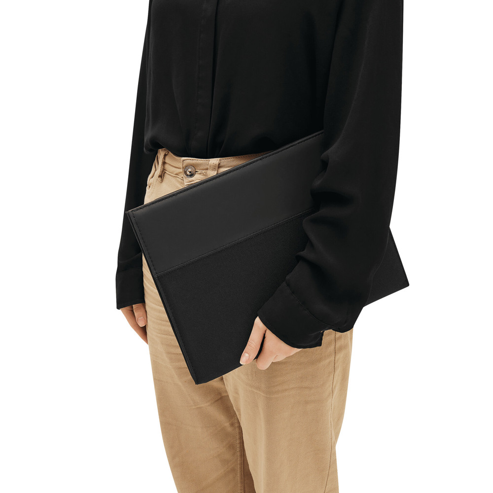 A4 schrijfmap EVENT met blok uitgevoerd in een combinatie van 600D polyester en PVC.