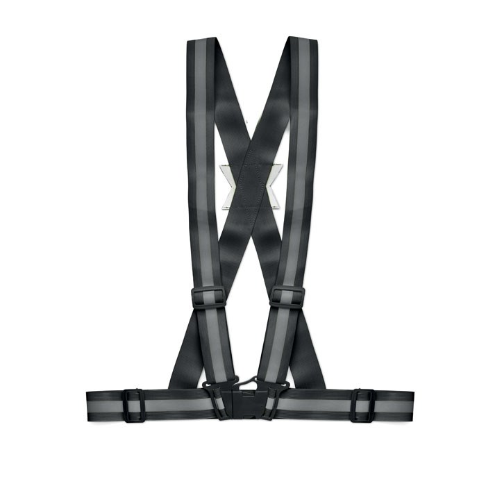 Verstelbare draagriem met 360° reflecterende zilverkleurige strepen. Zorgt voor extra zichtbaarheid tijdens outdoor activiteiten in schemer en donker. Alleen voor promotioneel gebruik.