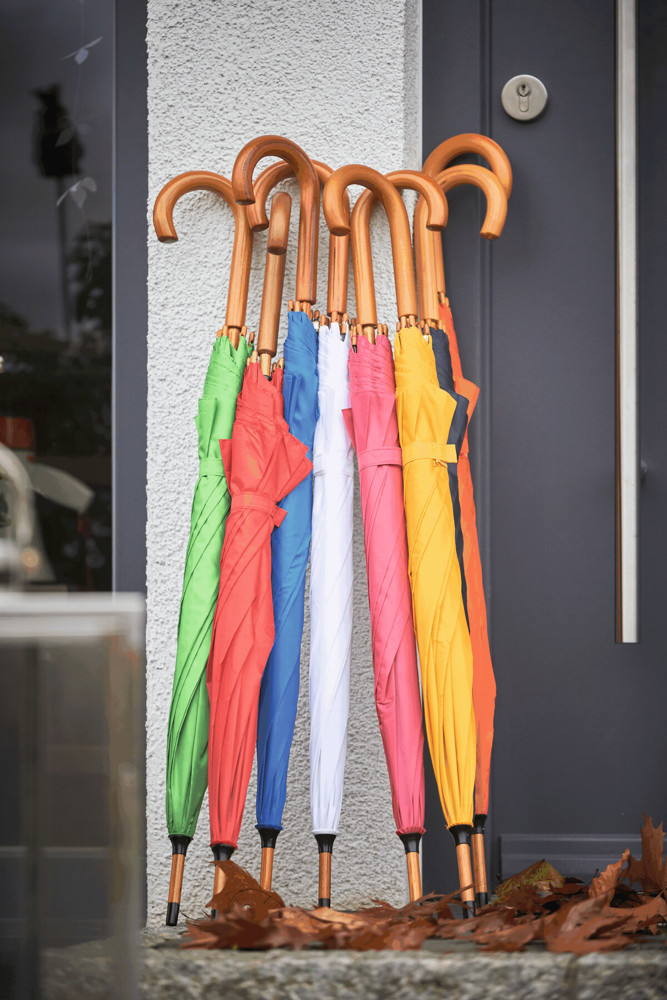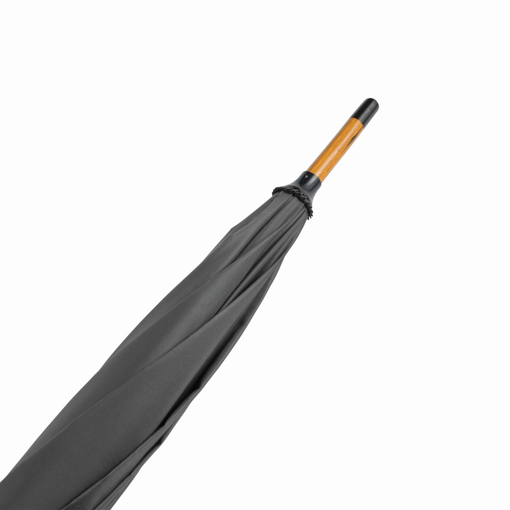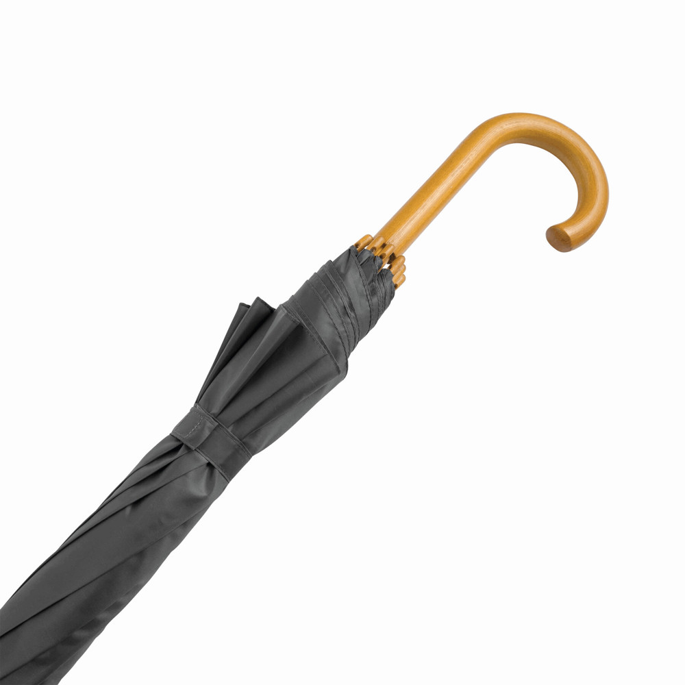 Automatisch te openen paraplu TANGO met houten steel, gebogen houten handvat en polyester cover.