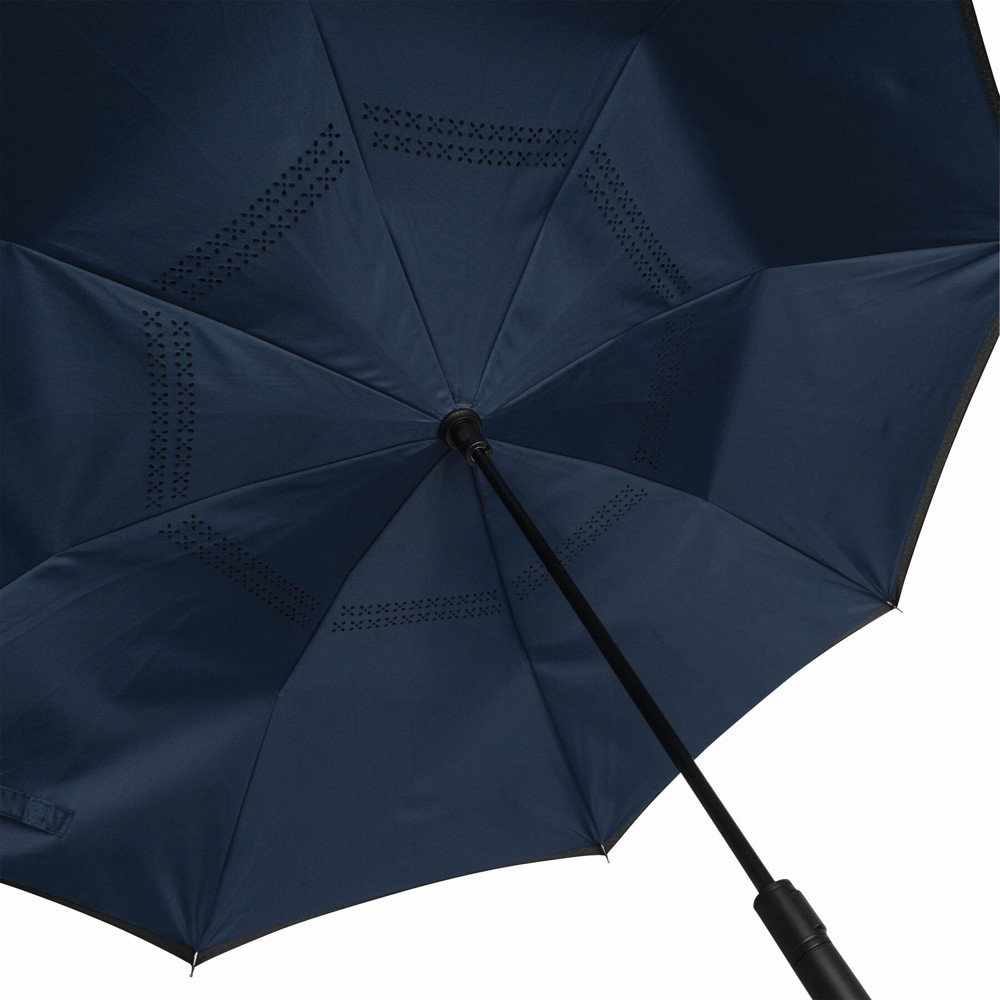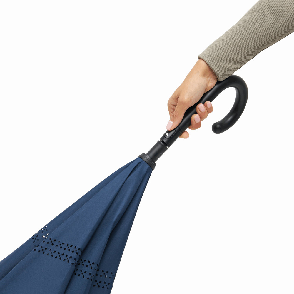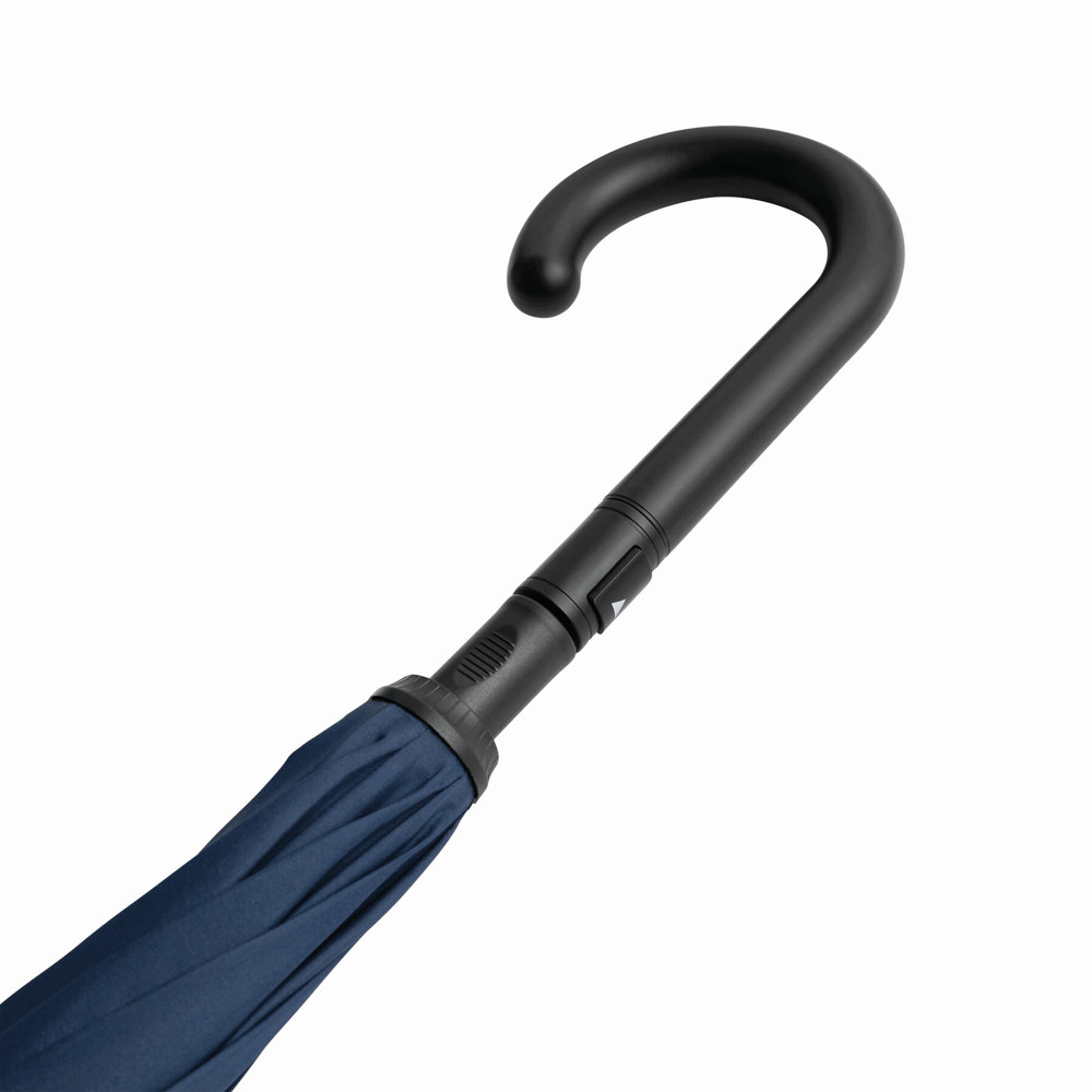 Automatische paraplu OPPOSITE: met omgekeerd open- en automatisch sluitmechanisme, veiligheidsschuif, dubbel doek met ventilatie ter voorkoming van luchtophoping, metalen steel, glasvezel baleinen met metalen tips, kunststof haakhandvat, polyester-pongee doek, sluitband met klittenband