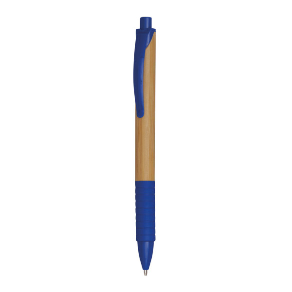 Balpen BAMBOO RUBBER: met drukmechanisme, elegante bamboe behuizing, rubberen grip - blauwschrijvendmeer