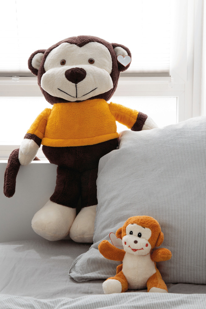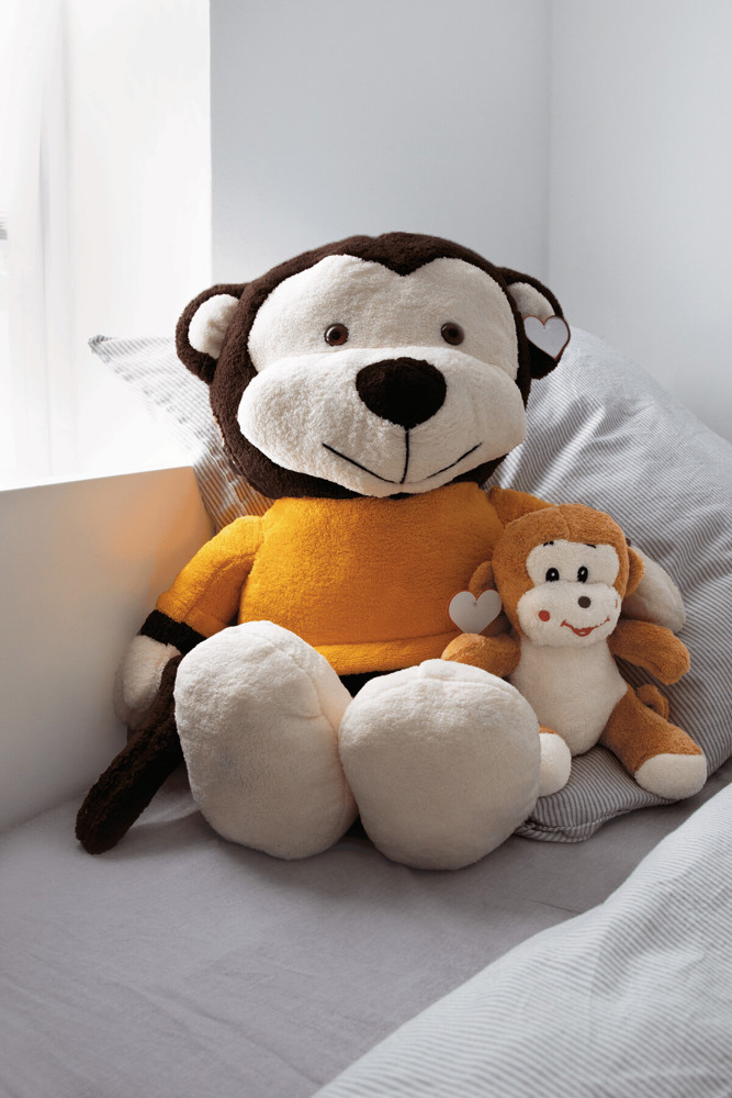 Grote pluche aap BATU: met zachte vacht, met aangehecht hartje voor bedrukking - Made in Europemeer