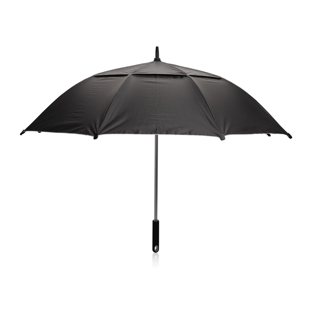De Hurricane-paraplu is ontworpen om ruige weersomstandigheden te weerstaan, dankzij het dubbellaagse paneel van 27 inch en de waterdichte stof. Met zijn duurzame constructie en praktische kenmerken is de Hurricane-paraplu een betrouwbare keuze voor iedereen die een betrouwbare paraplu nodig heeft tijdens regenachtig en stormachtig weer. Manueel open en sluiten. Daarnaast is de paraplu voorzien van UPF50+ bescherming. Geregistreerd ontwerp®. Met AWARE™ tracer die het echte gebruik van gerecyclede materialen valideert. 2% van de opbrengst van elk verkocht Aware™-product wordt gedoneerd aan Water.org.