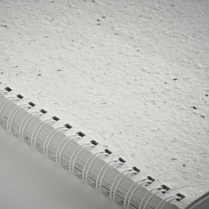 A5 notitieboek met zaadpapier kaft. Dubbel gebonden. 200 gerecyclede gelinieerde pagina's (100 vellen).