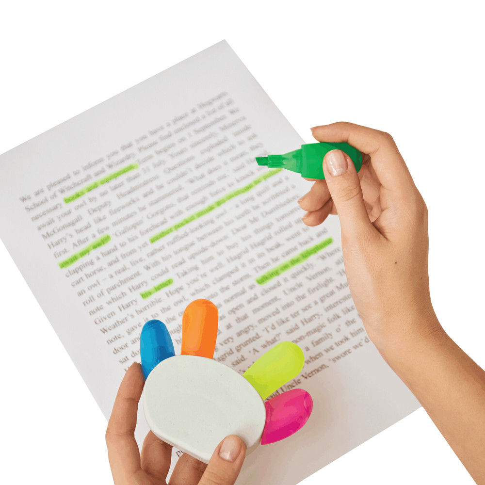 Markeerstift HANDS UP: met 5 kleuren (roze, geel, groen, oranje, blauw), voor 30% gemaakt van...meer
