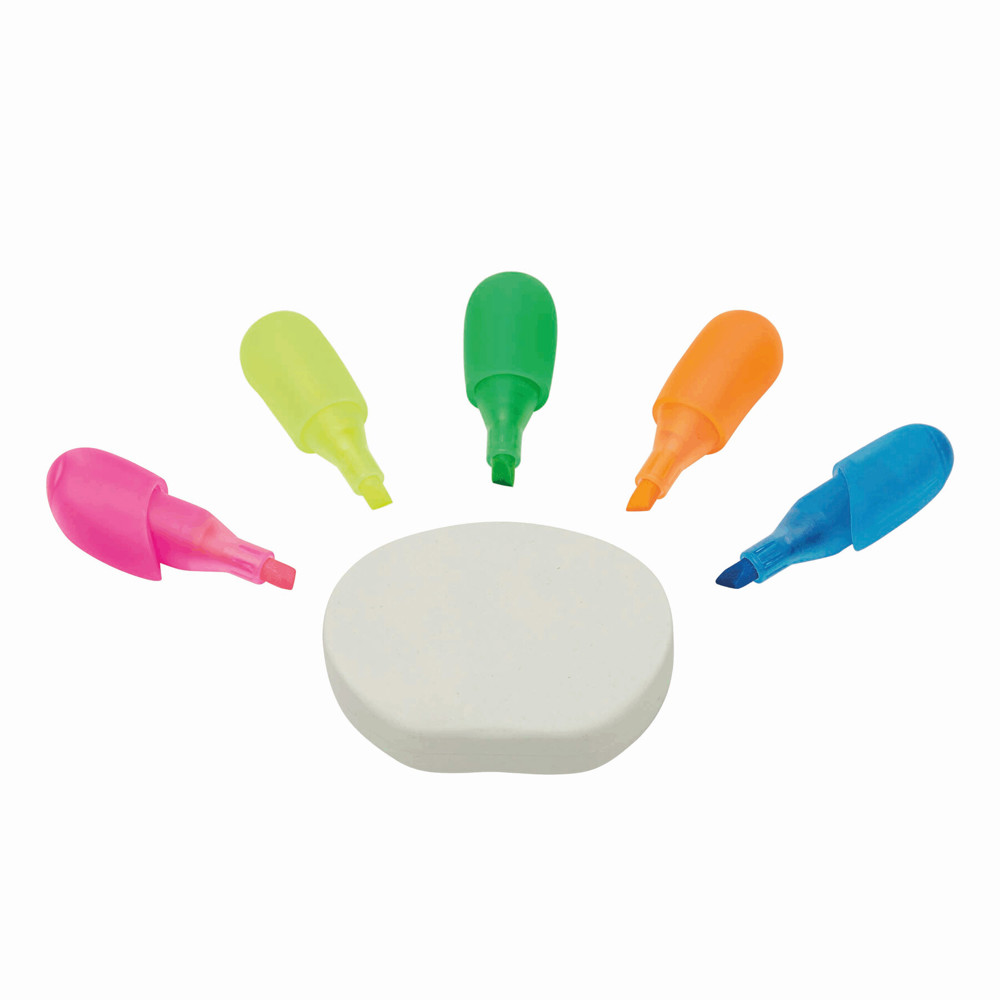 Markeerstift HANDS UP: met 5 kleuren (roze, geel, groen, oranje, blauw), voor 30% gemaakt van gerecyclede melkpakken.