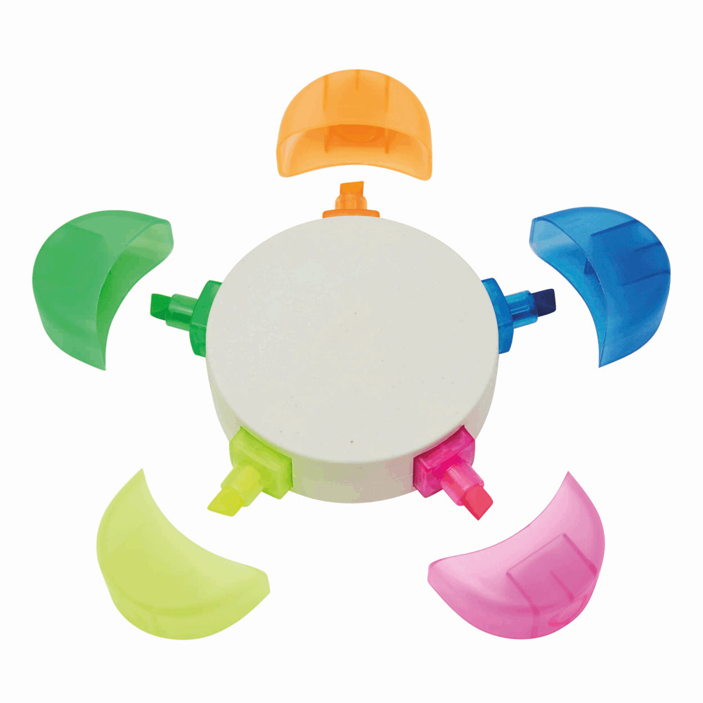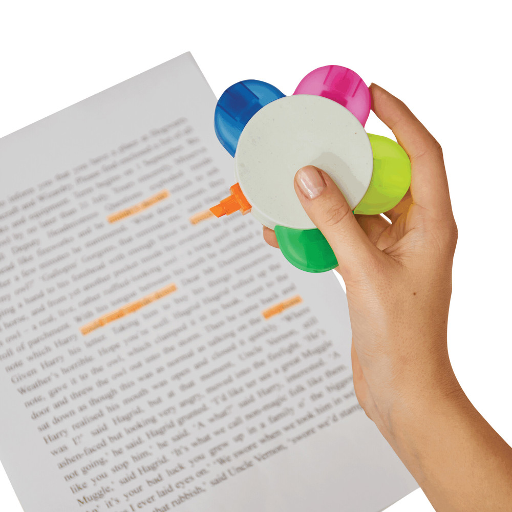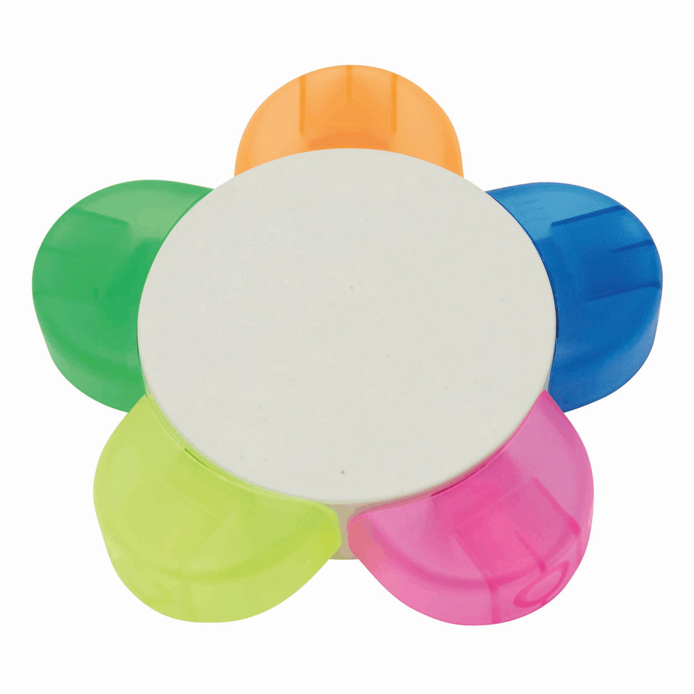 Bloemvormige markeerstift FLOWER: met 5 kleuren (groen, oranje, blauw, roze, geel), voor 30%...meer