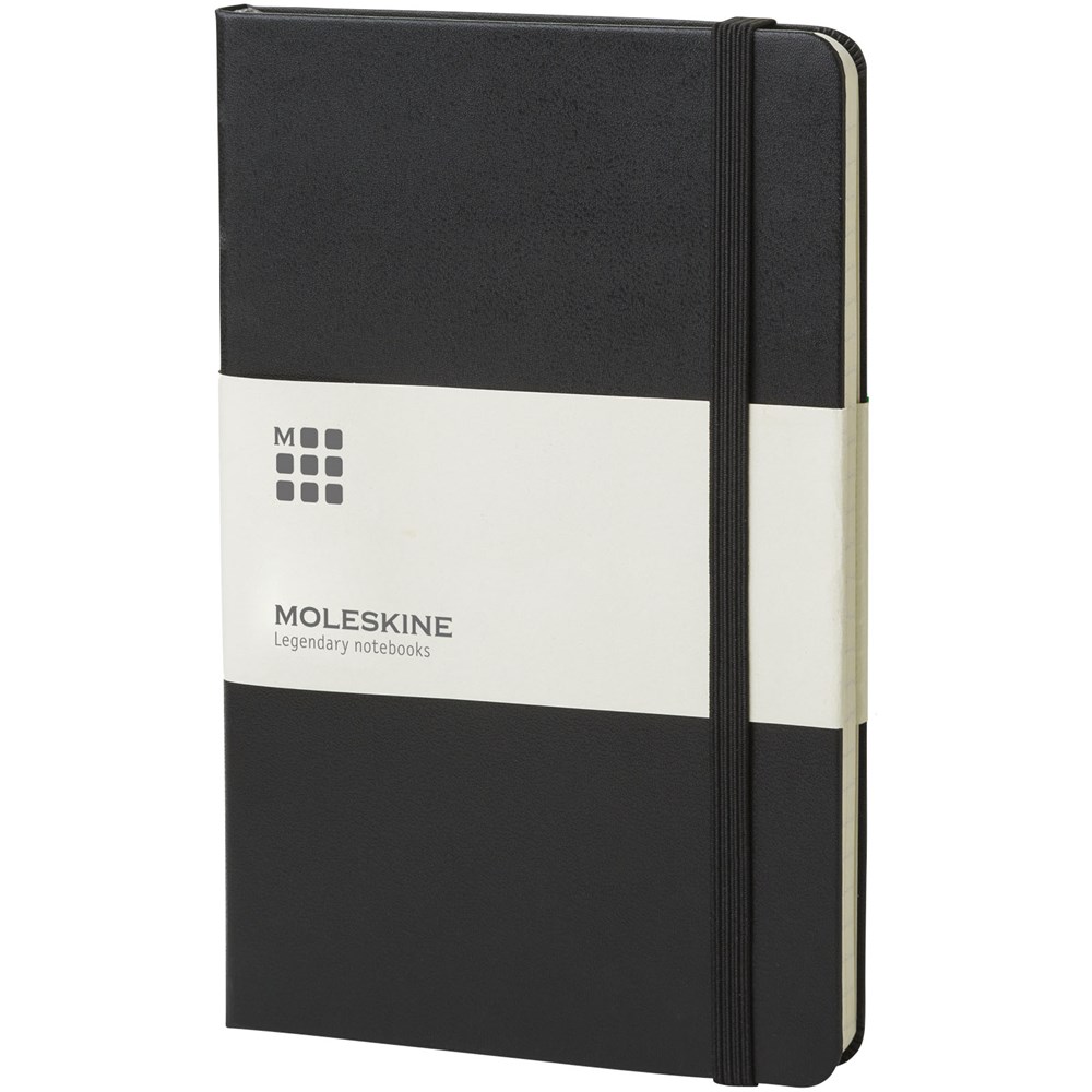 Moleskine Classic hardcover notitieboek in pocketformaat (9 x 14 cm). Verkrijgbaar in diverse stijlvolle, levendige kleuren. Het notitieboek heeft een omslag van gebonden karton met afgeronde hoeken, zuurvrij papier, een bladwijzer en een elastische sluiting. De eerste pagina biedt ruimte voor persoonsgegevens en het noteren van een beloning die de eerlijke vinder in geval van verlies ontvangt. Aan de achteromslag bevindt zich aan uitbreidbaar binnenvak met daarin de geschiedenis van Moleskine. Dit vak kan worden gebruikt voor losse papieren en notities. Bevat 192 ivoorkleurige gelinieerde pagina's.