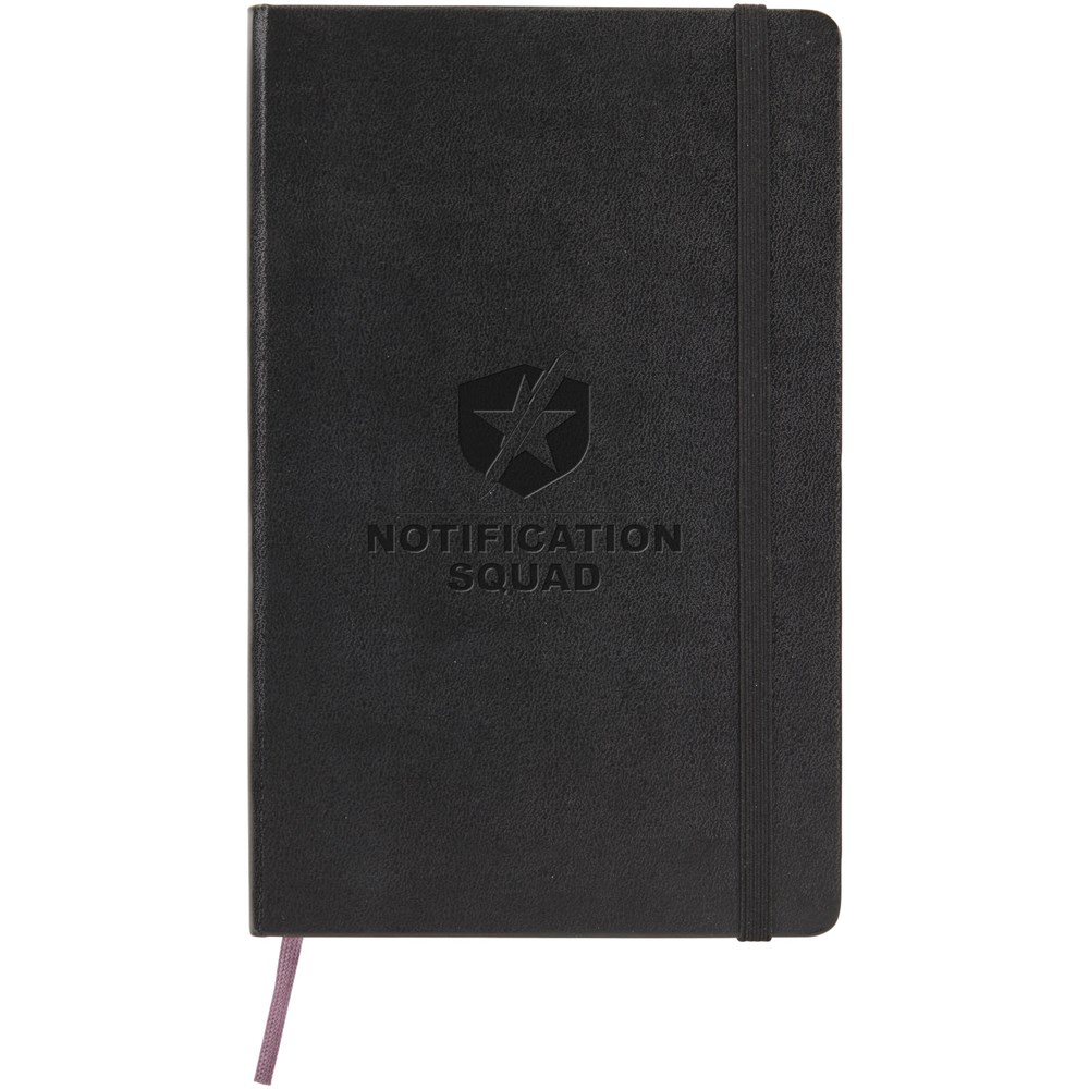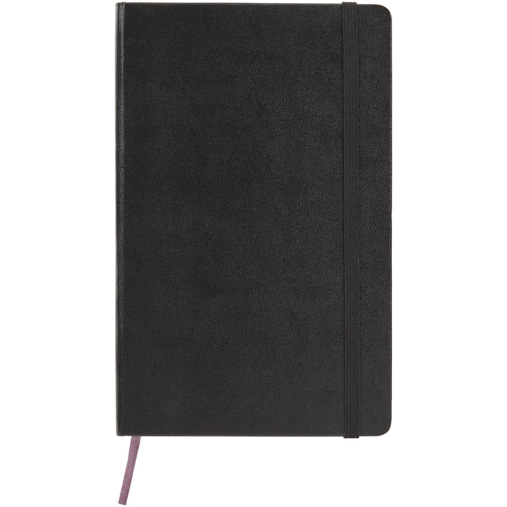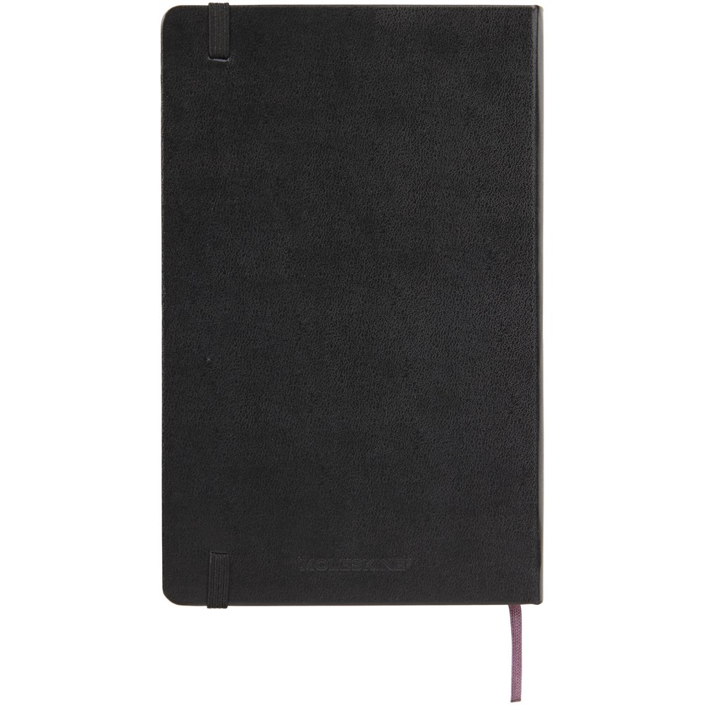 Classic Moleskine groot notitieboek met harde omslag in de populaire kleur zwart, plus een variatie aan stijlvolle levendige kleuren. Met afgeronde hoeken, elastische sluiting en een bladwijzer. Uitbreidbaar kartonnen vak en doek aan de binnenkant van de achterste omslag. Bevat 240 ivoorkleurige pagina's met ruitjes.