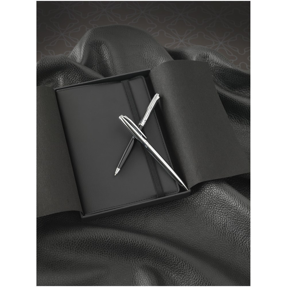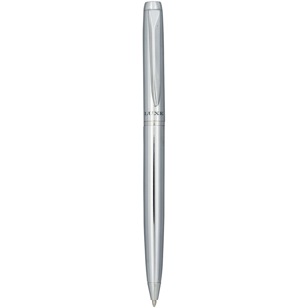 Balpen met exclusief design met glanzende chroomaccenten. Incl. premium zwarte inkt navulling en verpakt in een ''LUXE'' geschenkverpakking (15 x 3,5 x 2 cm).