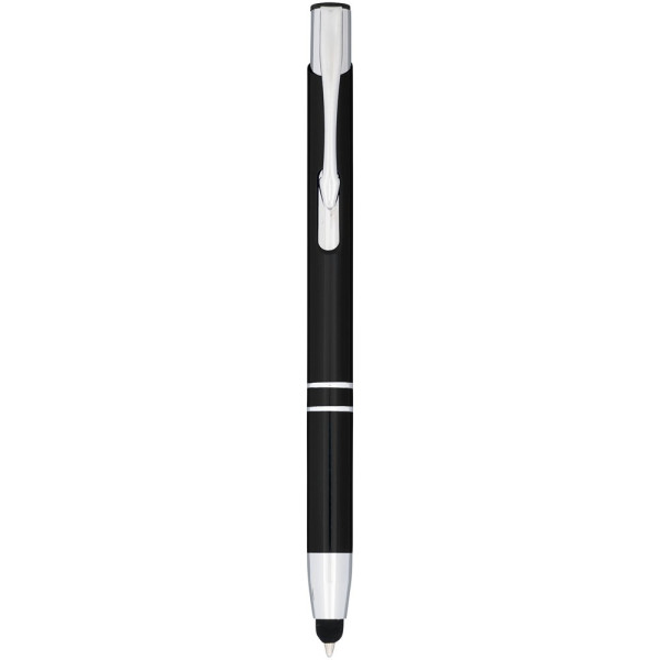 De metaalkleurige geanodiseerde balpen heeft een ingebouwde stylus aan de penpunt. De pen is verkrijgbaar in een grote variëteit aan kleuren en heeft een geanodiseerde afwerking die hem een prachtige glans geeft. Het uitgebreide en populaire Moneta-assortiment is verkrijgbaar in vele verschillende stijlen en afwerkingen.