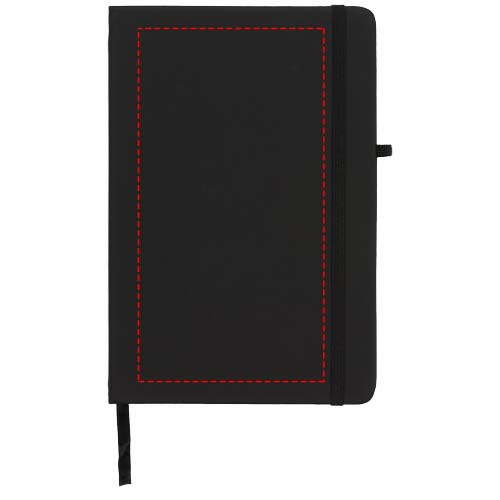 Het Noir-notitieboek heeft een harde PU omslag wat zacht aanvoelt voor een tastbare afwerking. Elk notitieboek heeft een gekleurd sluitbandje, penlus en bladwijzer. Het notitieboek bevat 96 bladen (70g/m2) crèmekleurig lijntjespapier.
