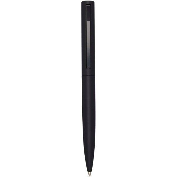 Balpen waarbij het bovenste deel van de pen is gemaakt van gerecycled plastic en het onderste deel van gerecycled aluminium. De pen is voorzien van een veerbelaste, kantelbare metalen clip, waardoor hij eenvoudig kan worden bevestigd aan dikkere items zoals tassen of notitieboeken. De clip klikt hoorbaar bij het omklappen. Inktkleur: zwart. Schrijflengte: 1000 meter. Puntdikte: 1,0 mm.