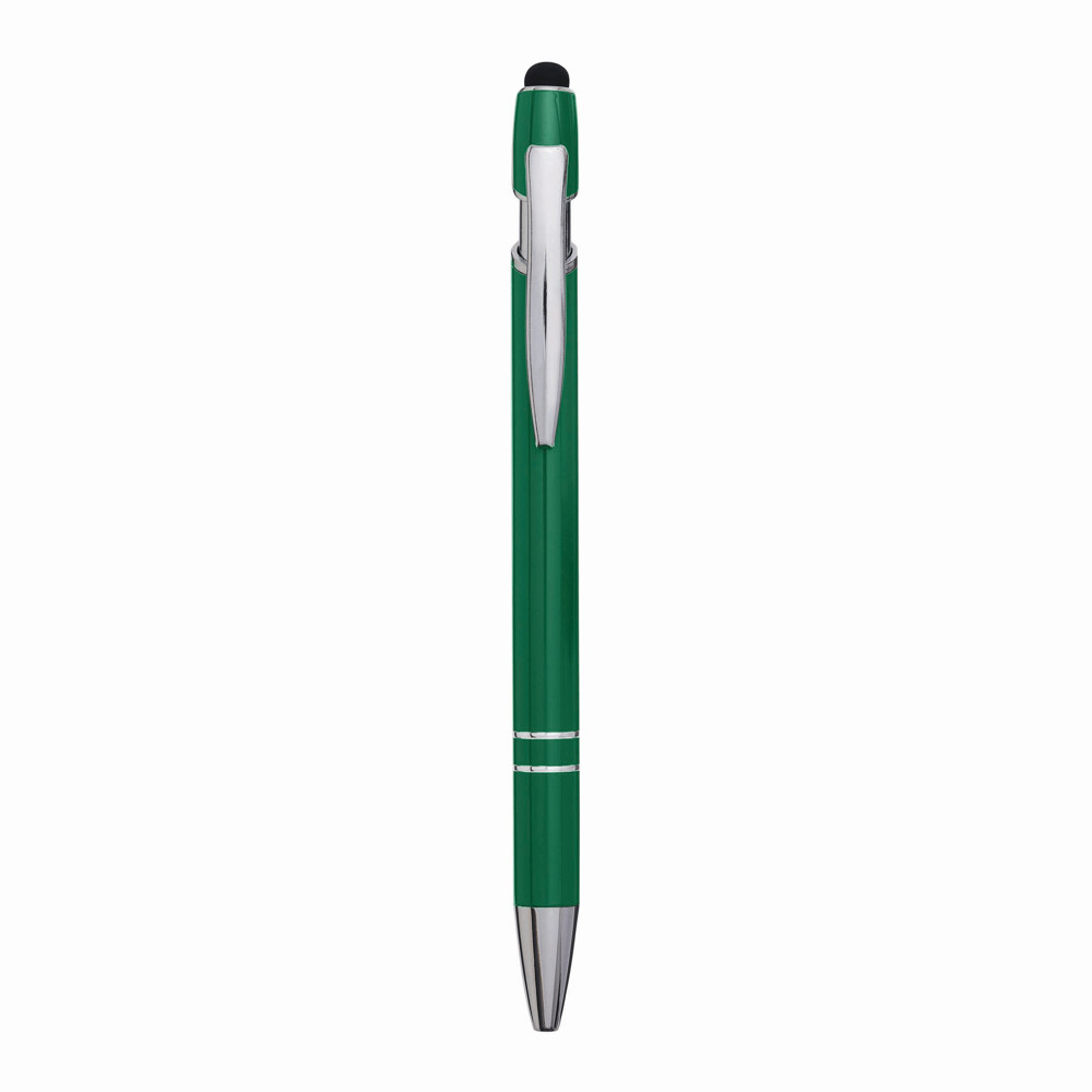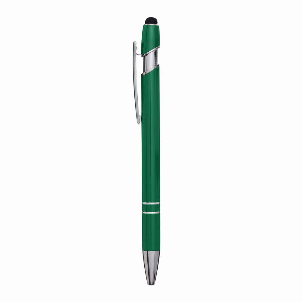 Aluminium balpen MERCHANT: met glanzende metalen behuizing, drukmechanisme, aan het uiteinde van de houder met touchscreen punt, blauwschrijvend