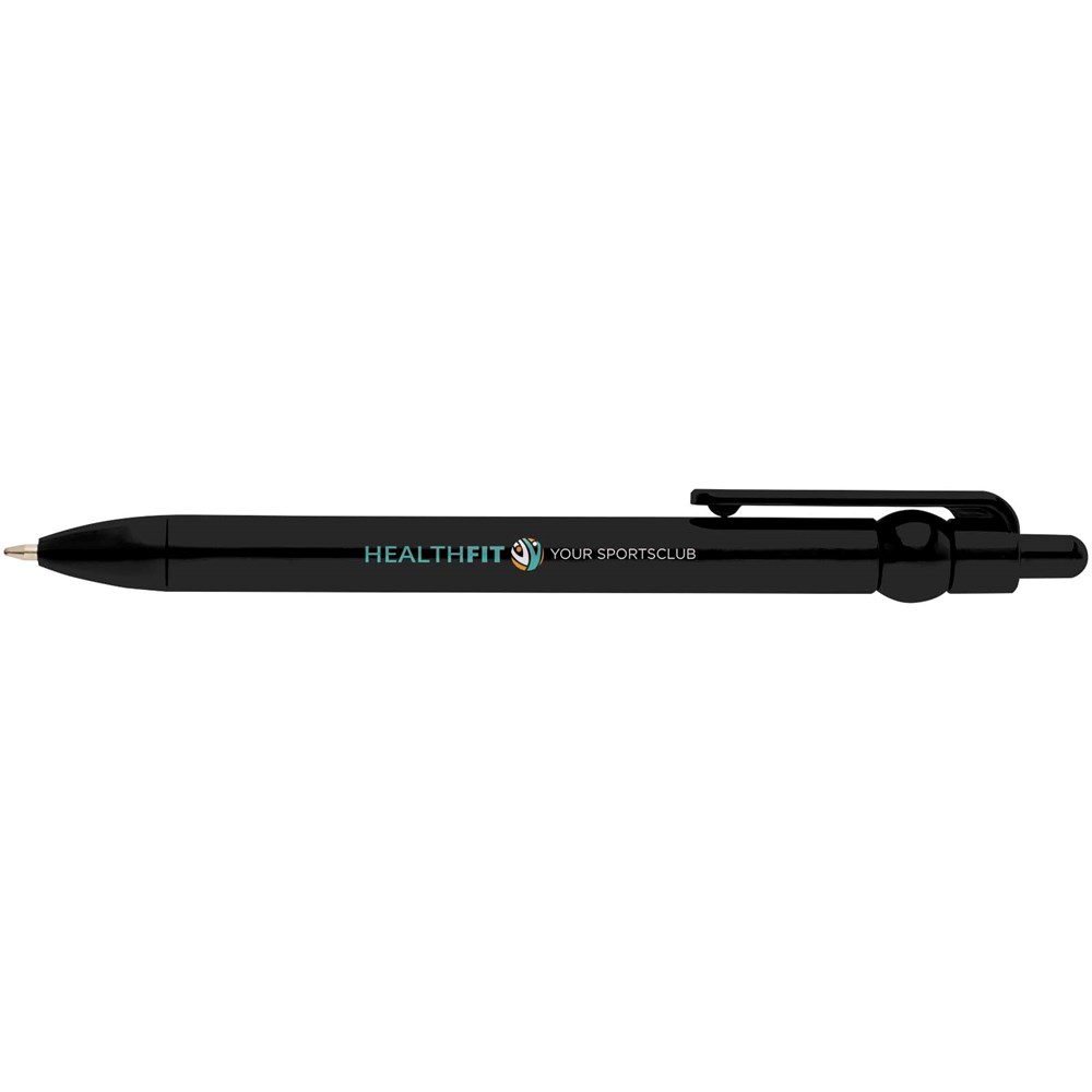 De Fidget balpen met zwarte inkt is gemaakt van gerecycled plastic en heeft een ingebouwde draaiende bal bij de clip, waardoor functionaliteit wordt gecombineerd met een speels accent. Puntdikte: 1,0 mm. Schrijflengte: 1000 meter.