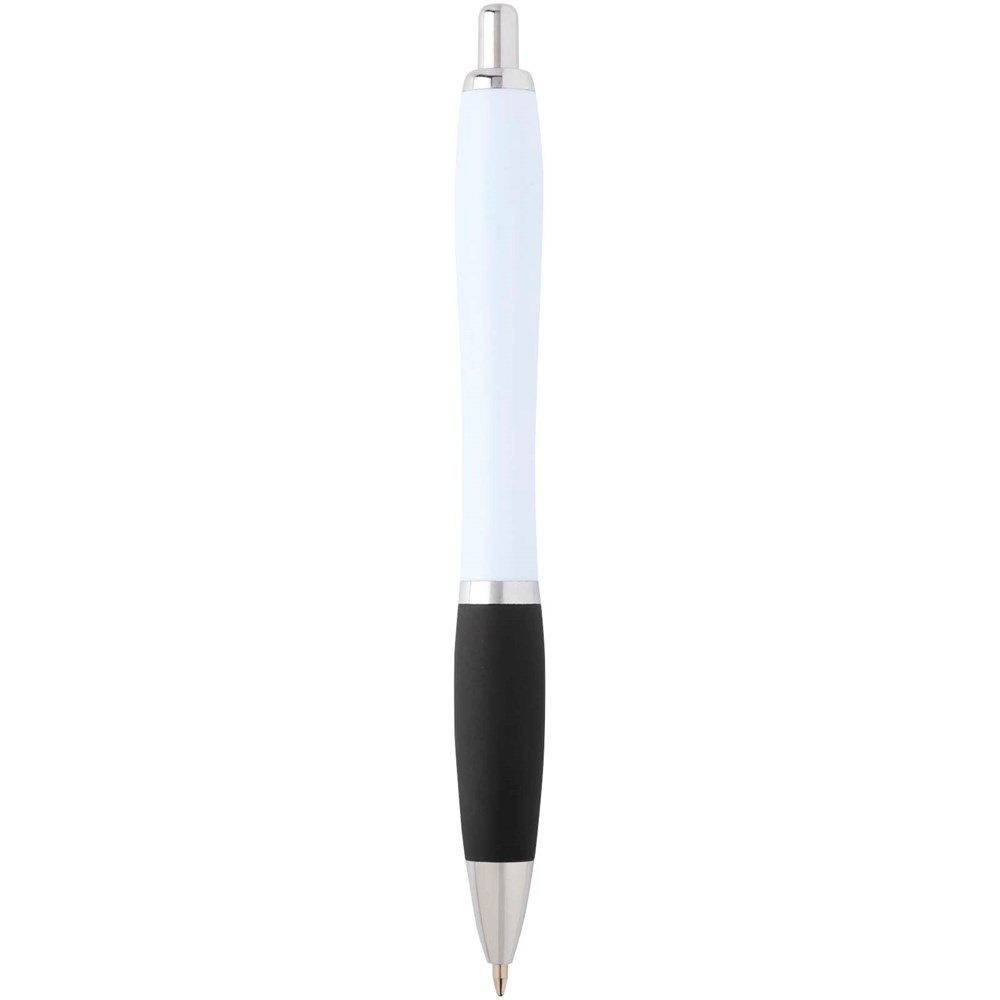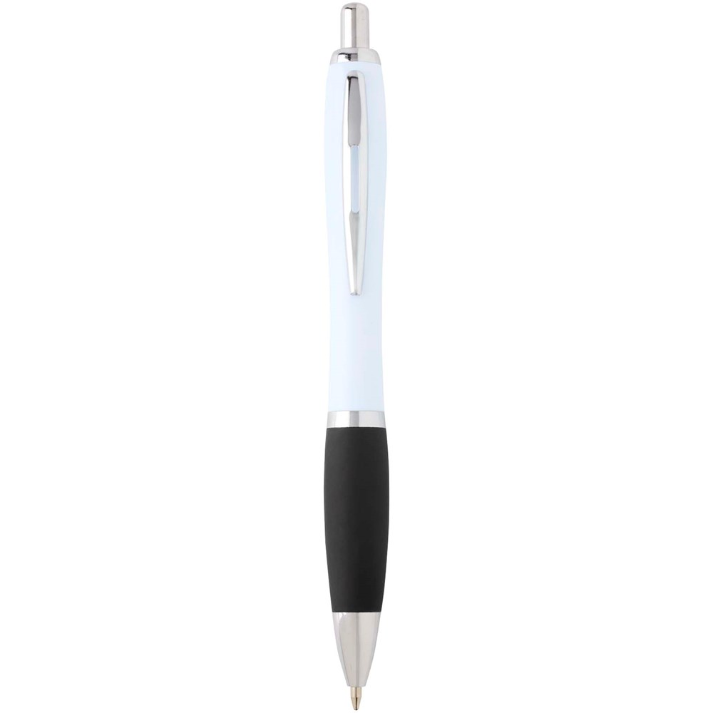 De Nash balpen met een stijlvol gebogen ontwerp en een zachte grip is gemaakt van gerecycled plastic dat hard en stevig is en dus een lange levensduur heeft. Inktkleur: Blauw. Schrijflengte: 1000 meter. Stiftmaat: 1,00 mm.