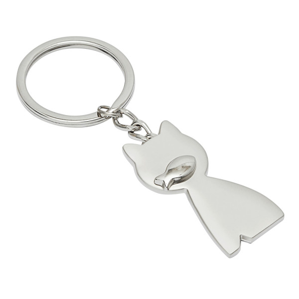 Metalen sleutelhanger CAT in de vorm van een kat en vismeer