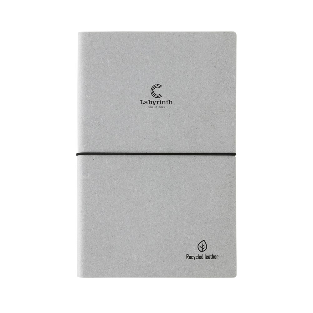 Wees milieubewust zonder in te boeten aan stijl met dit prachtige notitieboek gemaakt van GRS gerecycled leer. De hoes heeft een aangename textuur en een aardse natuurlijke uitstraling. 80 vellen / 160 gelinieerde 75 grams crèmepagina's recycled papier zorgen ervoor dat je elke gedachte die bij je opkomt kunt bijschrijven. Plastic vrij verpakt in FSC sleeve.