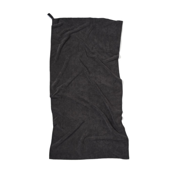 Microvezel sporthanddoek gemaakt van gerecyclede PET-flessen. Door het unieke badstofgevoel absorbeert deze handdoek meer water en droogt hij drie keer sneller dan een traditionele handdoek. Zeer geschikt voor buitenactiviteiten en sport. Lichtgewicht en compact, de handdoek is een ideaal formaat voor op reis of in de sportschool. Gemaakt van 52% GRS (Global Recycle Standard) gecertificeerde gerecyclede materialen, waarbij de GRS-certificering een volledig gecertificeerde toeleveringsketen van gerecyclede materialen garandeert. Totale gerecyclede inhoud gebaseerd op het totale productgewicht.