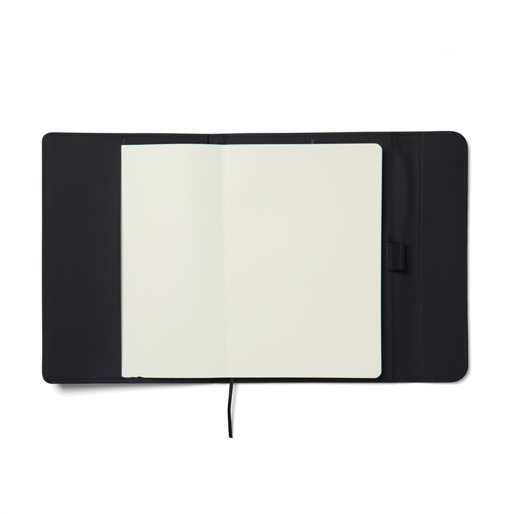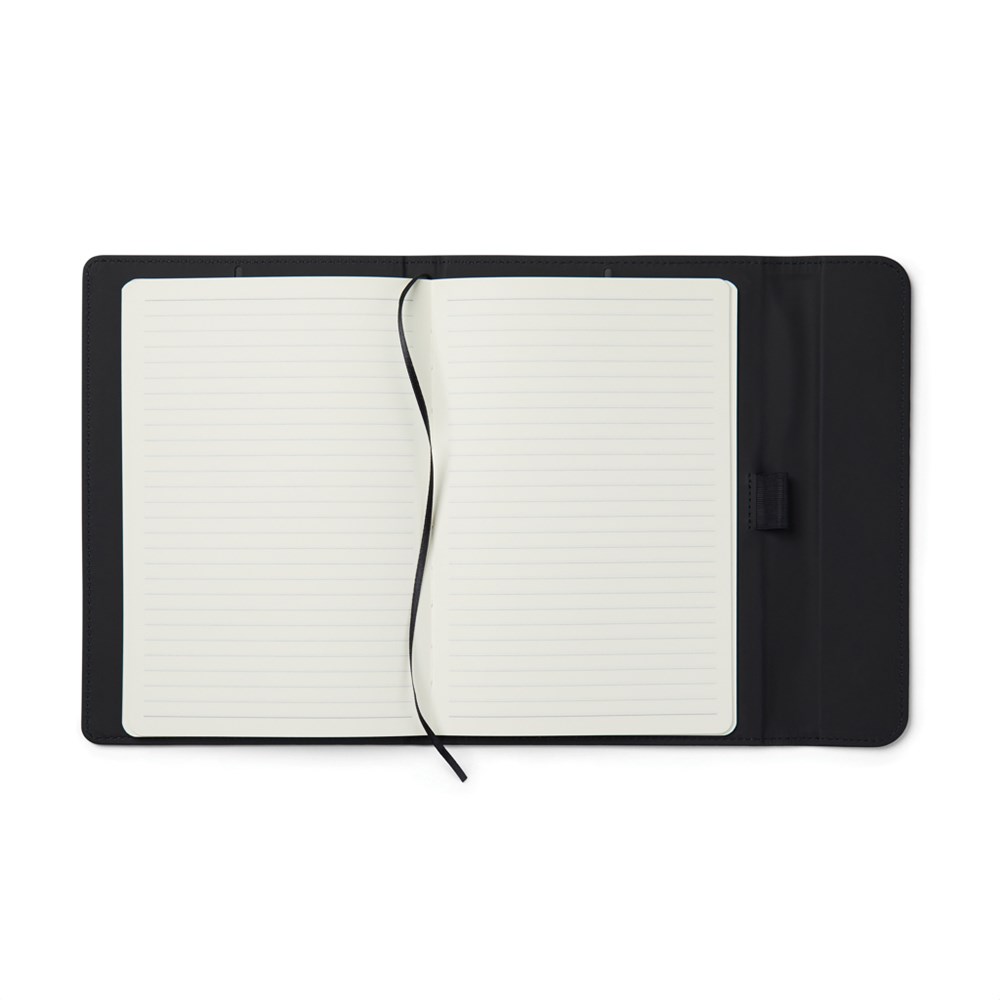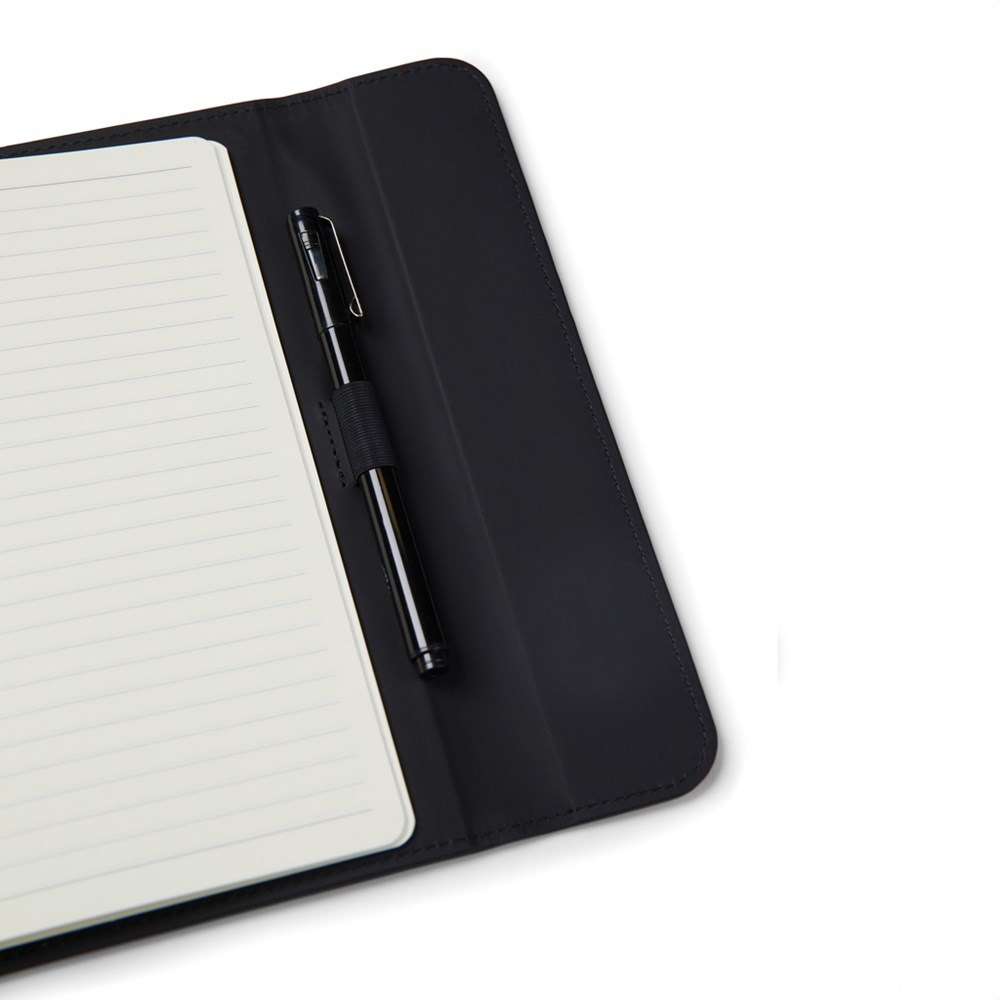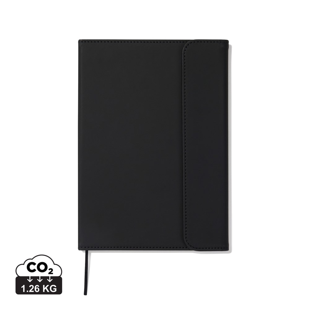 Elegant A5 notitieboek met een moderne uitstraling. De omslag, gemaakt van 30% gerecycled mat PU, heeft een magnetische sluiting en een geïntegreerde penhouder. Gevuld met 80 pagina's/160 vellen 70 grams gelinieerd gerecycled papier, geschikt voor al je notities. Het binnenwerk kan worden vervangen, zodat je de omslag kunt blijven gebruiken. Gecertificeerd door GRS (Global Recycled Standard), deze certificering garandeert dat de hele toeleveringsketen van de gerecyclede materialen gewaarborgd is. Het totale gerecyclede gehalte is gebaseerd op het totale productgewicht. Dit product bevat 54% GRS-gecertificeerd papier en 5% GRS-gerecycled PU.