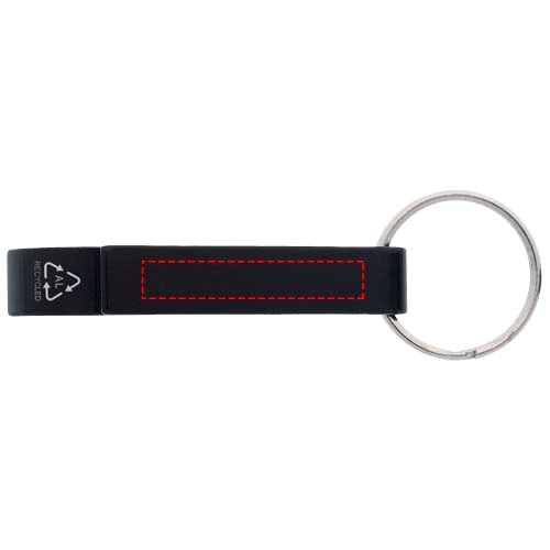 Tao fles- en blikopener van RCS gerecycled aluminium met sleutelhanger