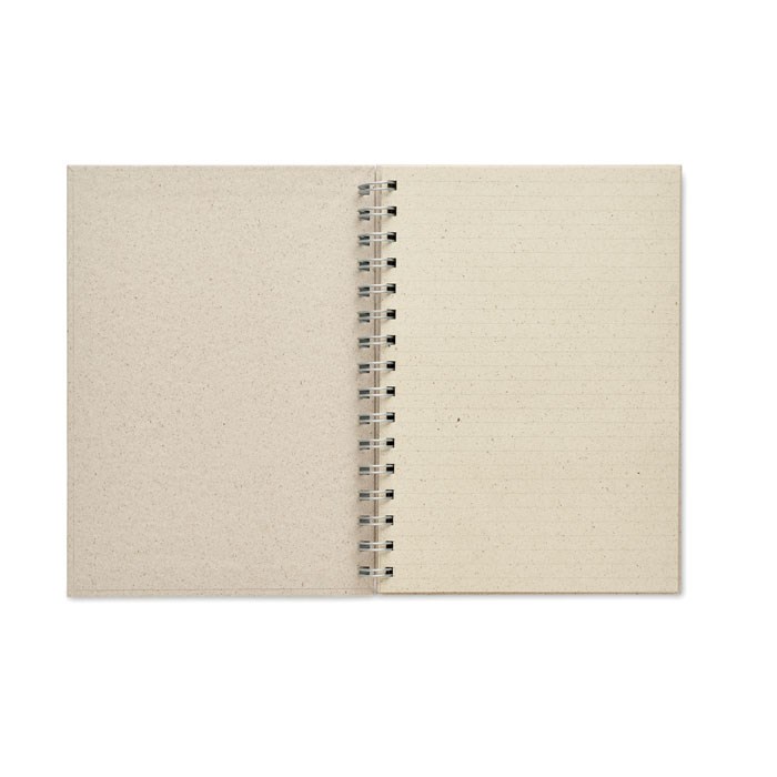 A5 notitieboek met 80 vellen gelinieerd graspapier en kartonnen kaft. Ideaal voor al je notities tijdens vergaderingen op kantoor of op school. Graspapier is een perfecte bewuste promotionele give-away. Het productieproces is van begin tot eind duurzaam en milieuvriendelijker dan traditioneel papier op houtbasis. Gemaakt in de EU.