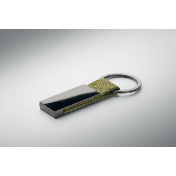 Set van een hardcover A5 notitieboek met 160 gelinieerde pagina's van gerecycled papier (80 vellen/70g/m²), een metalen balpen met draaimechanisme en een sleutelhanger. Gemaakt van 20% theedrab, 30% kurk en 50% polykatoen. Metalen detail op de elastische band. FSC®-certified | FSC MIX CREDIT, N7.1, FSC-C213206