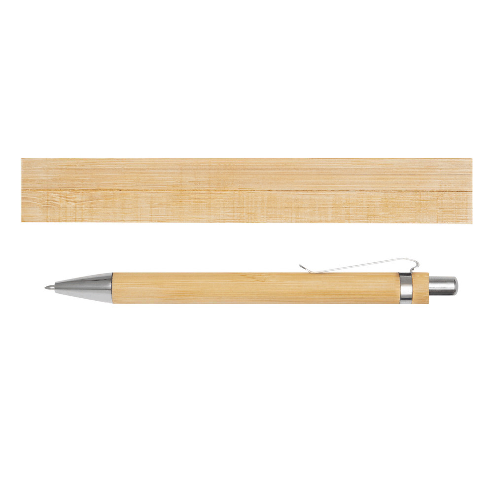 Bamboe notitieblokhouder PERPETUAL: met eeuwigdurende kalender bestaande uit 4 houten kubussen met gegraveerde informatie (dagen van de week, dagen van de maand en maanden), smartphonehouder, met 50 notitieblaadjes (70 g/m²), bamboe balpen met metalen clip (zwarte inkt) en vakjes voor 2 pennen, in doosje.