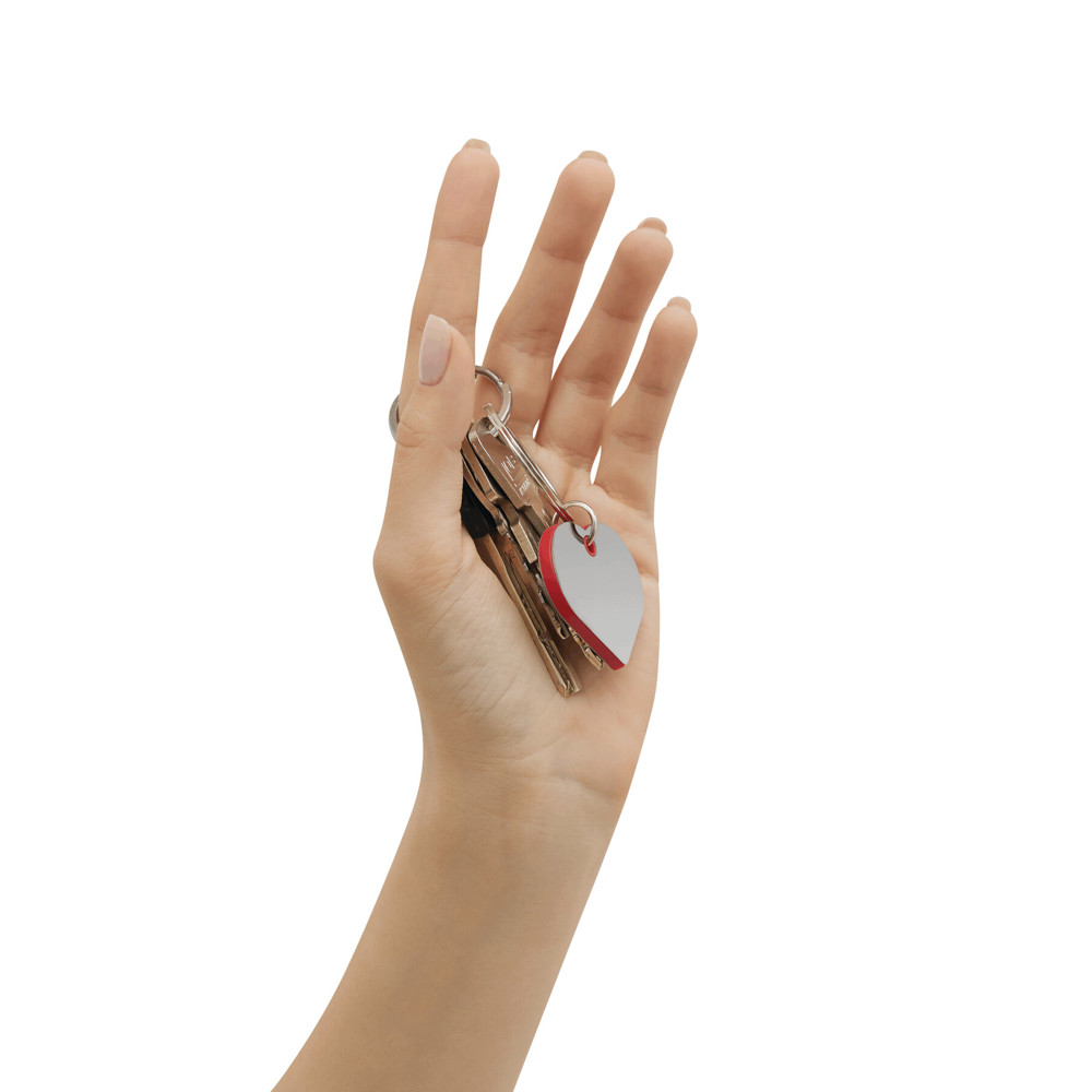 EVERLASTING LOVE sleutelhanger: rood plastic hart tussen hoogglans gepolijste stalen harten.meer