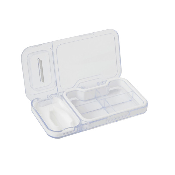 Tabletbox CUT IT: met 4 aparte vakken, 1 tabletverdeler, met transparant deksel.