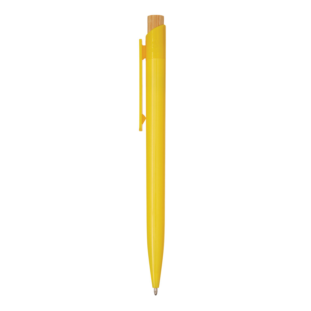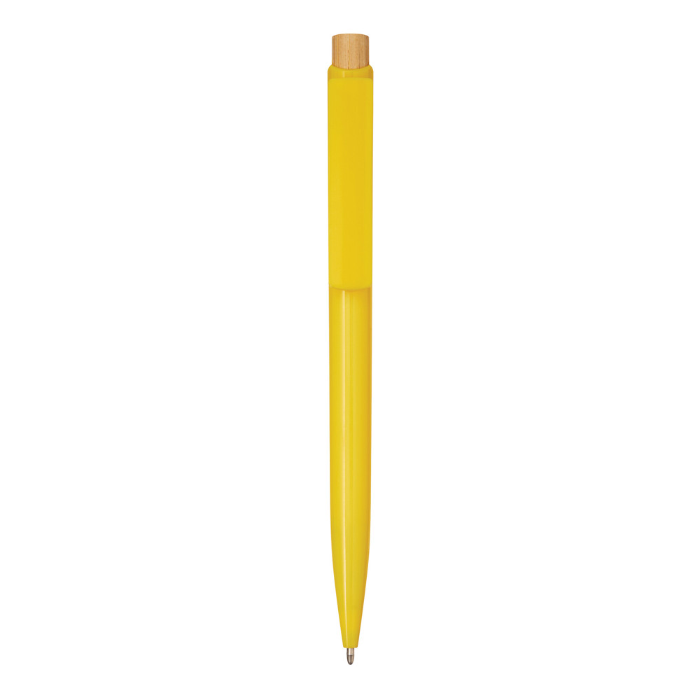 BAPU biros: behuizing gemaakt van gerecycled plastic, drukmechanisme, drukknop gemaakt van bamboe, blauwe inkt.