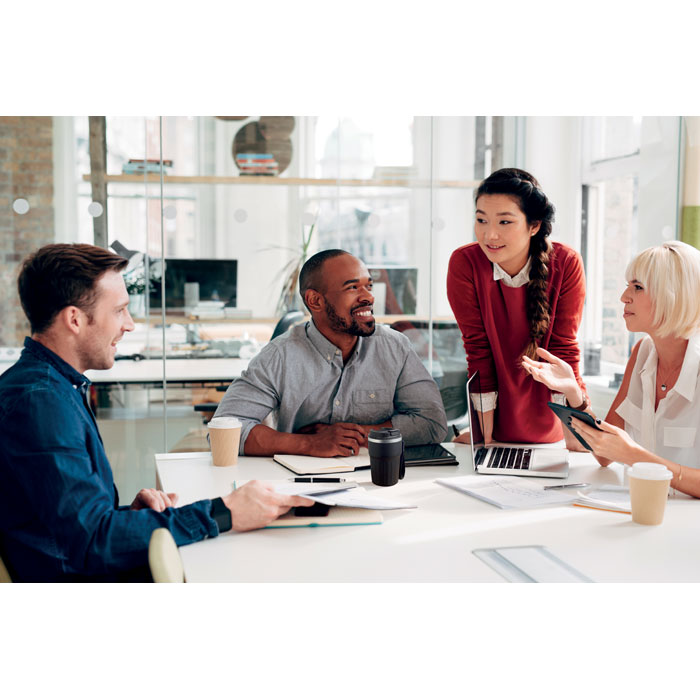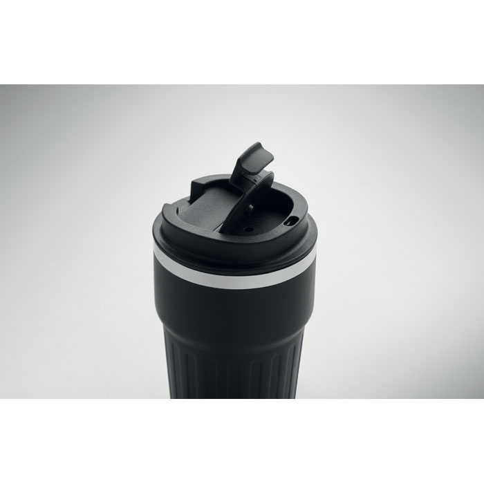 A5 notitieboekje, balpen van gerecycled aluminium en 350ml dubbelwandige gerecyclede roestvrijstalen beker met PP-drinkdeksel en polsriem in geschenkverpakking.