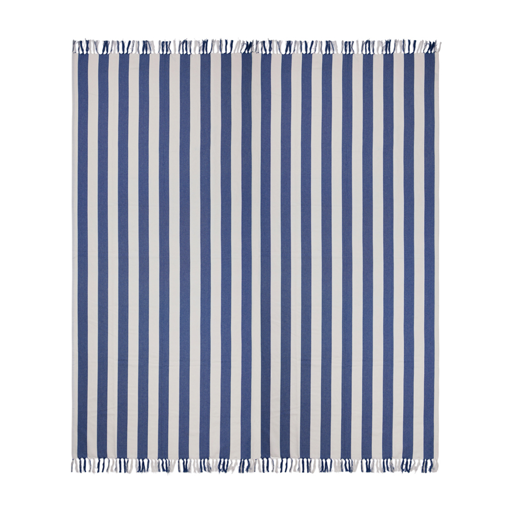 Deze strandlaken voor het hele gezin heeft een klassiek tweekleurig streepmotief met franjes aan de korte zijden. Met zijn royale afmetingen van 180 × 180 cm is hij ideaal om te delen met dierbaren, of u nu ontspant op het strand of bij het zwembad. Het is gemaakt van een lichtgewicht en luchtige mix van 200 g/m² en combineert het comfort van katoen met de sneldrogende eigenschappen van polyester. Gecertificeerd door GRS (Global Recycled Standard). De GRS-certificering garandeert dat de hele toeleveringsketen van de gerecyclede materialen gecertificeerd is. Het totale gerecyclede gehalte is gebaseerd op het totale productgewicht. Dit product bevat 70% GRS-gecertificeerd gerecycled katoen en 29% GRS-gecertificeerd gerecycled polyester.
