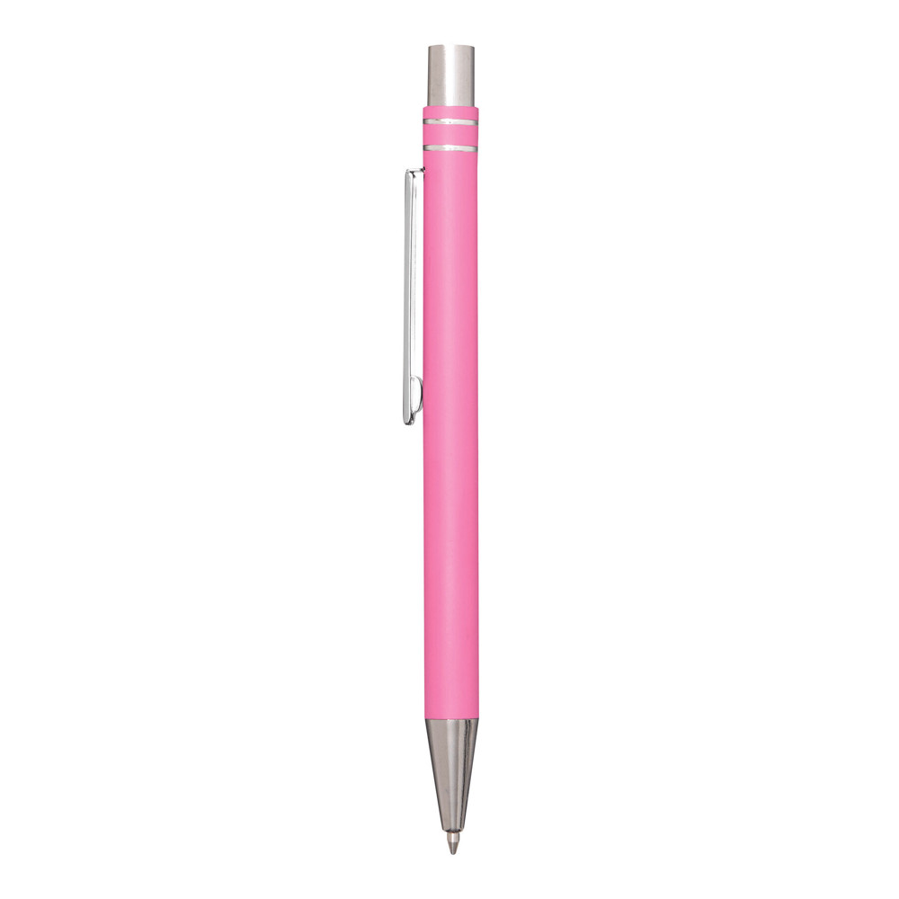 Aluminium gelbalpen ANNY: met matte aluminium behuizing, drukmechanisme, grote vulling met gel-inkt, schrijft in blauw.