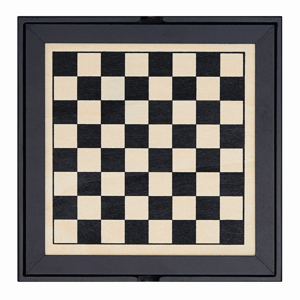 Houten spellendoos FAMILY-FUN met speelkaarten, domino, schaak en backgammon spel.