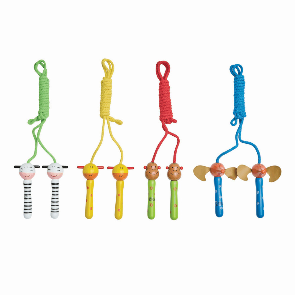 Kleurrijk springtouw ANIMAL ANIMATION met houten dierfiguren als handvat, assorti geleverd.meer