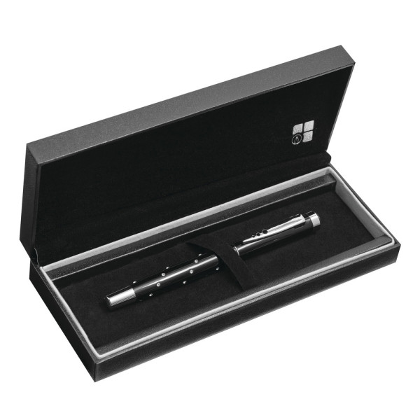 Metalen rollerball RIGA gedecoreerd met 24 „CRYSTALLIZED™- Swarovski“ - elementen op de schacht. Inclusief luxe geschenkdoos.