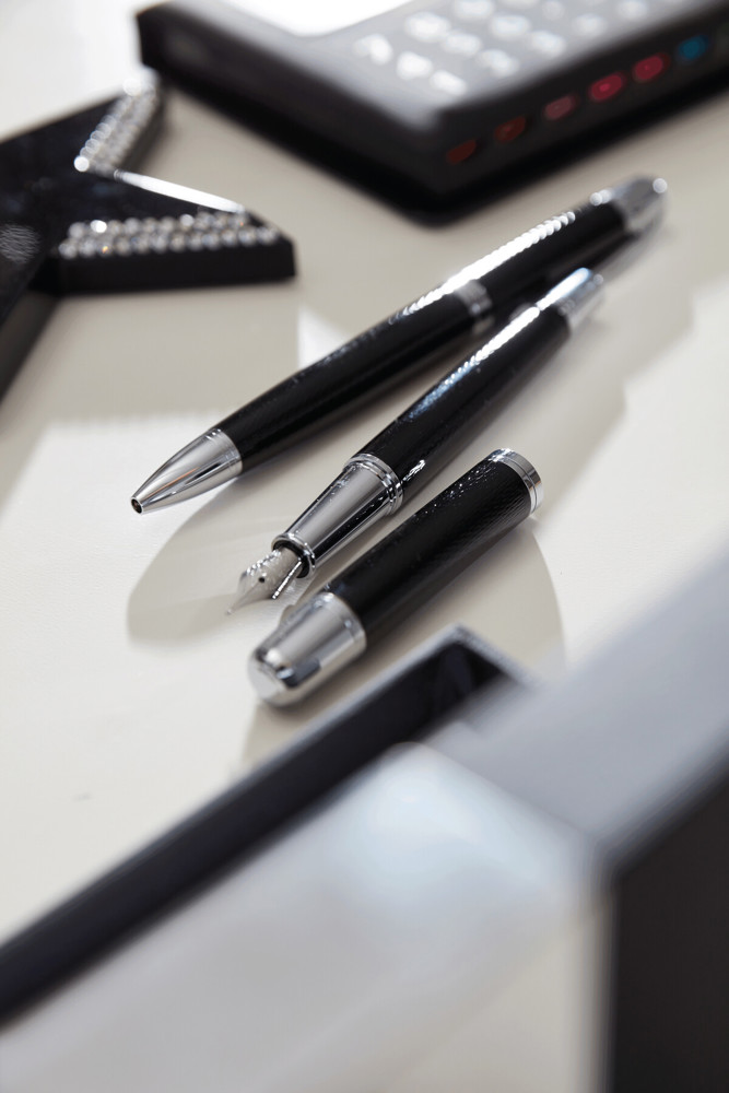 Pennenset MANZONI bestaande uit zwart schrijvende vul-en balpen in luxe met aluminium afgewerkte doos.