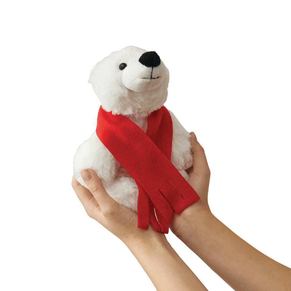 Pluche ijsbeer LARS met bedrukbare sjaal (los meegeleverd).