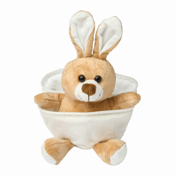 Pluche konijn LUKAS: met zachte vacht, in pluche ei met rits, met aangehecht hartje voor bedrukking.meer
