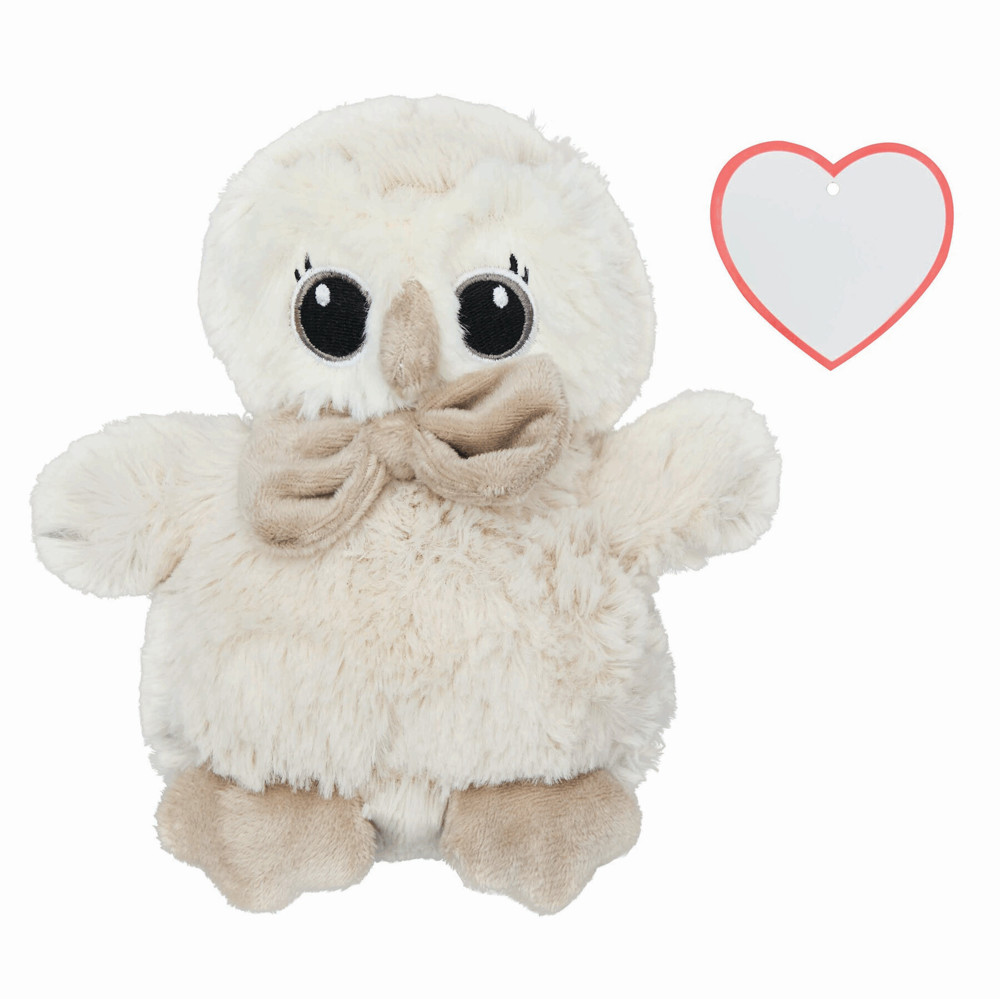 Pluche uil HELGA met extra zachte vacht en afgezet met stof op oren, neus, poten en om de hals een leuke strik. Incl hartvormig kaartje voor bedrukking.