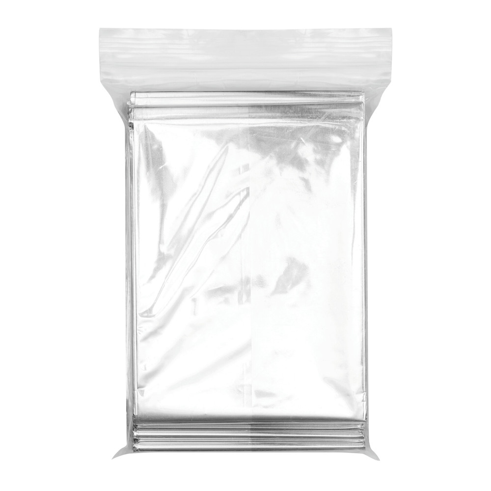 Reddingsdeken COVERING UP; isolatiedeken van polysterfolie (PET) met aluminium coating biedt bescherming bij onderkoeleing en oververhitting.