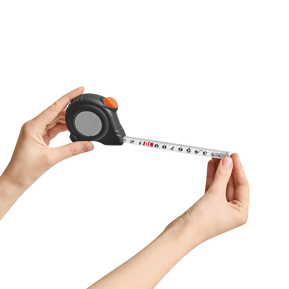 Rolbandmaat (3m) BUILDER I in rubberen houder met automatische oprolfunctie, stopper en clip.