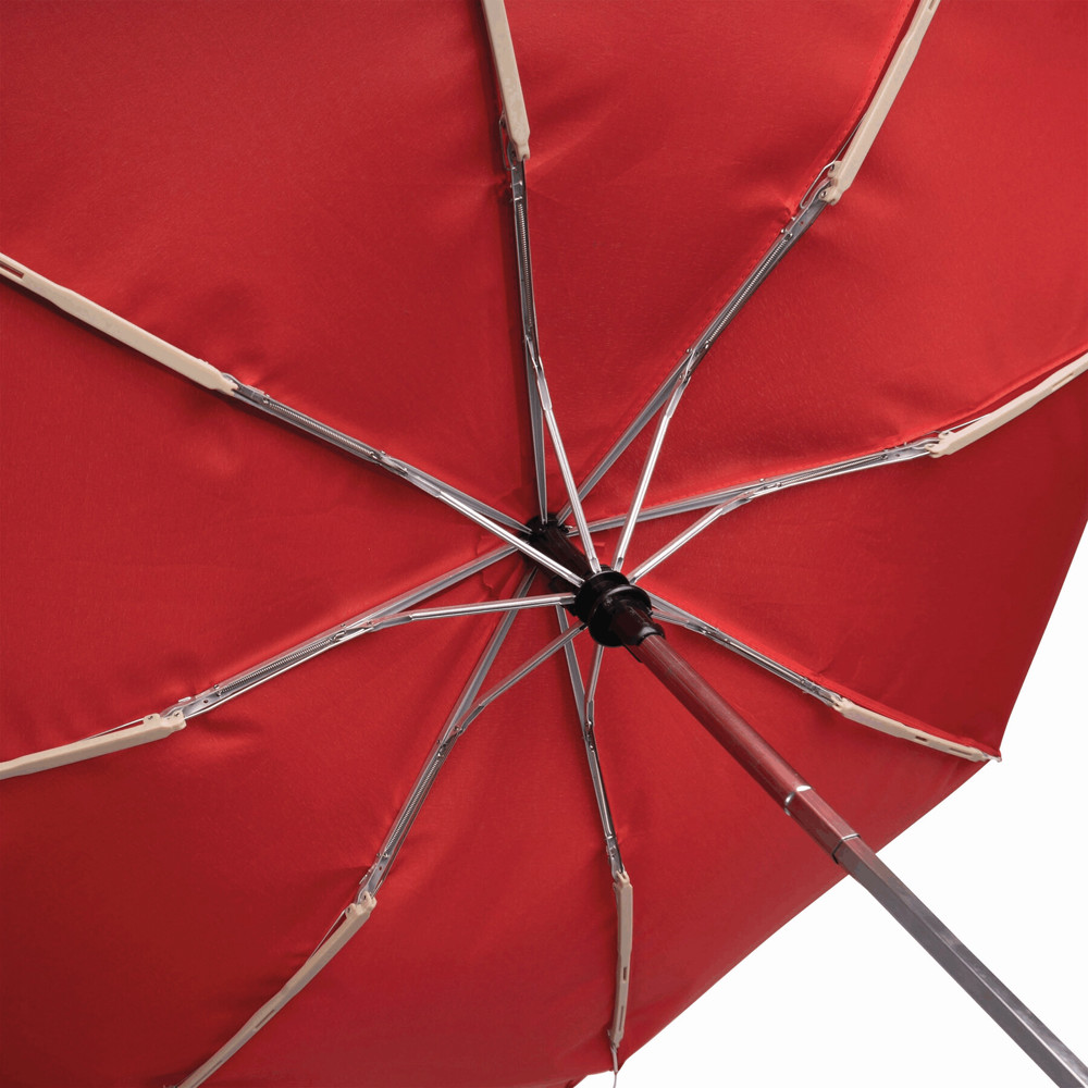 Stormvaste, automatisch te openen- en sluiten, uit 3 secties bestaande opvouwbare paraplu BORA met baleinen van aluminium, kunststof en fiberglas en rubbercoated grip. Polyester cover.