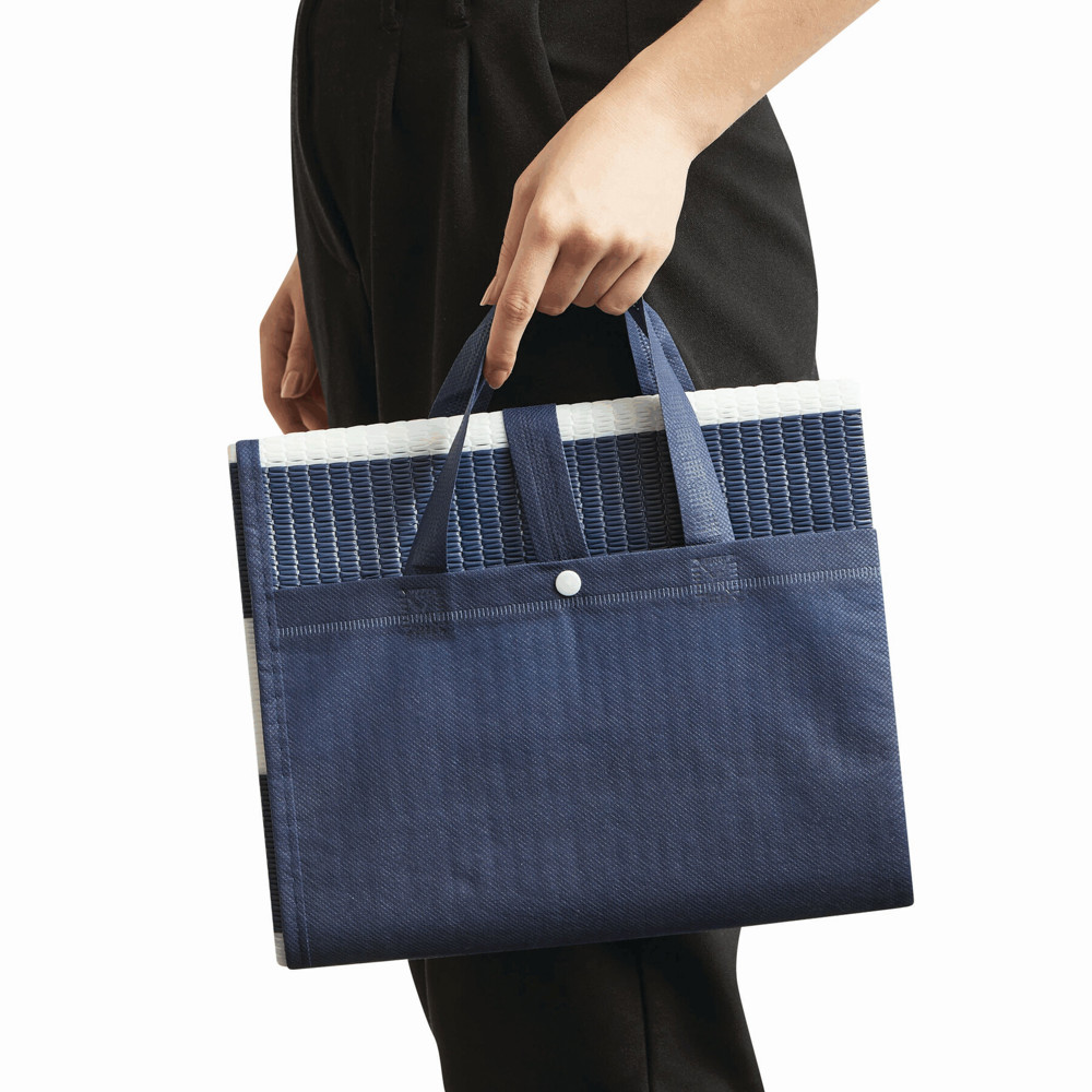 Uitvouwbare strandtas MARINA, eenvoudig om te vormen tot strandmat met opblaasbare hoofdkussen.meer