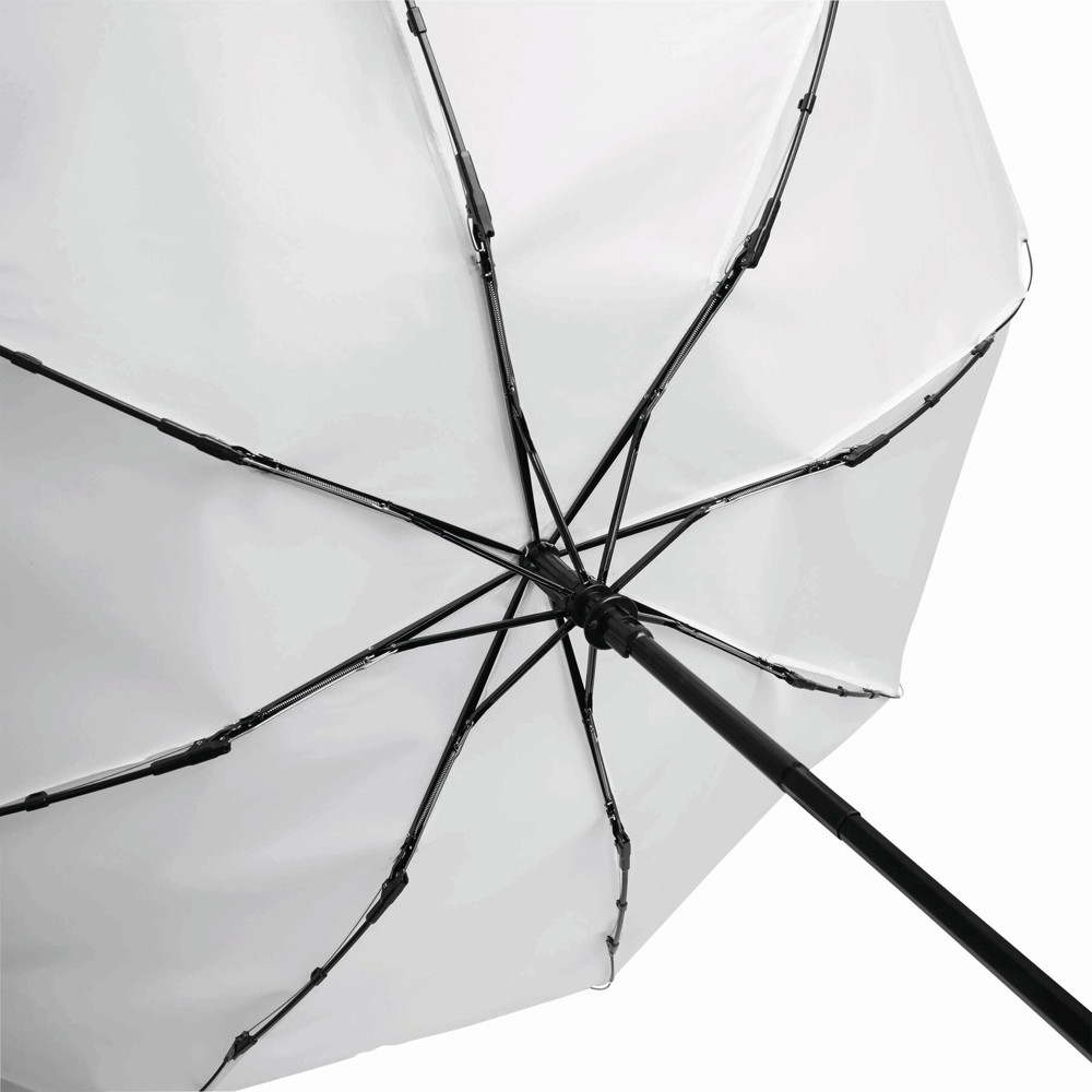 Volautomatische windproof pocket paraplu. PLOPP in bijpassende hoes: 3-delige metalen steel, met metalen /fiberglas baleinen met metalen tips, een rubberen handvat met draagriempje, doek van polyester, met een sluitbandje met klittenband