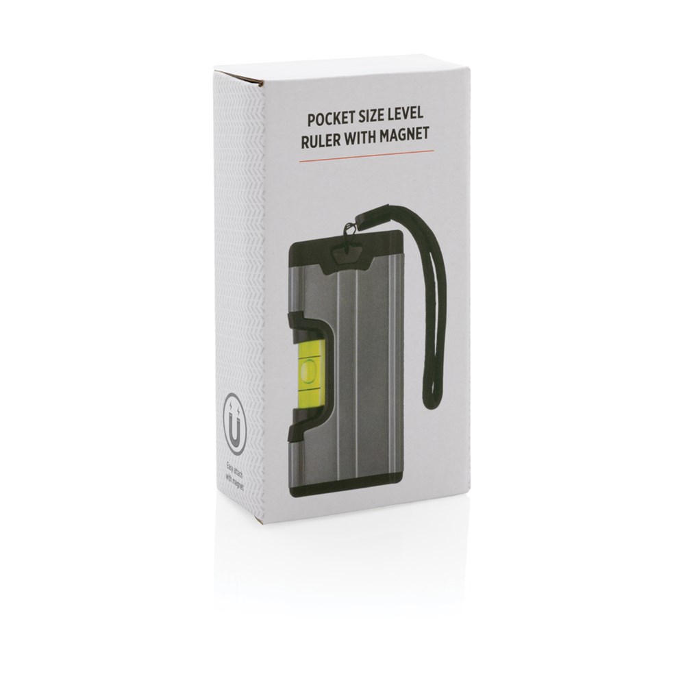 Werk nauwkeurig en zorg ervoor dat de details perfect zijn met deze 10 cm zakformaat aluminium waterpas. De waterpas wordt geleverd met een magnetische basis om hem op metalen oppervlakken te bevestigen en schokabsorberende rubberen eindkappen. Inclusief polyester polsband. Nauwkeurigheid 0,5 mm.